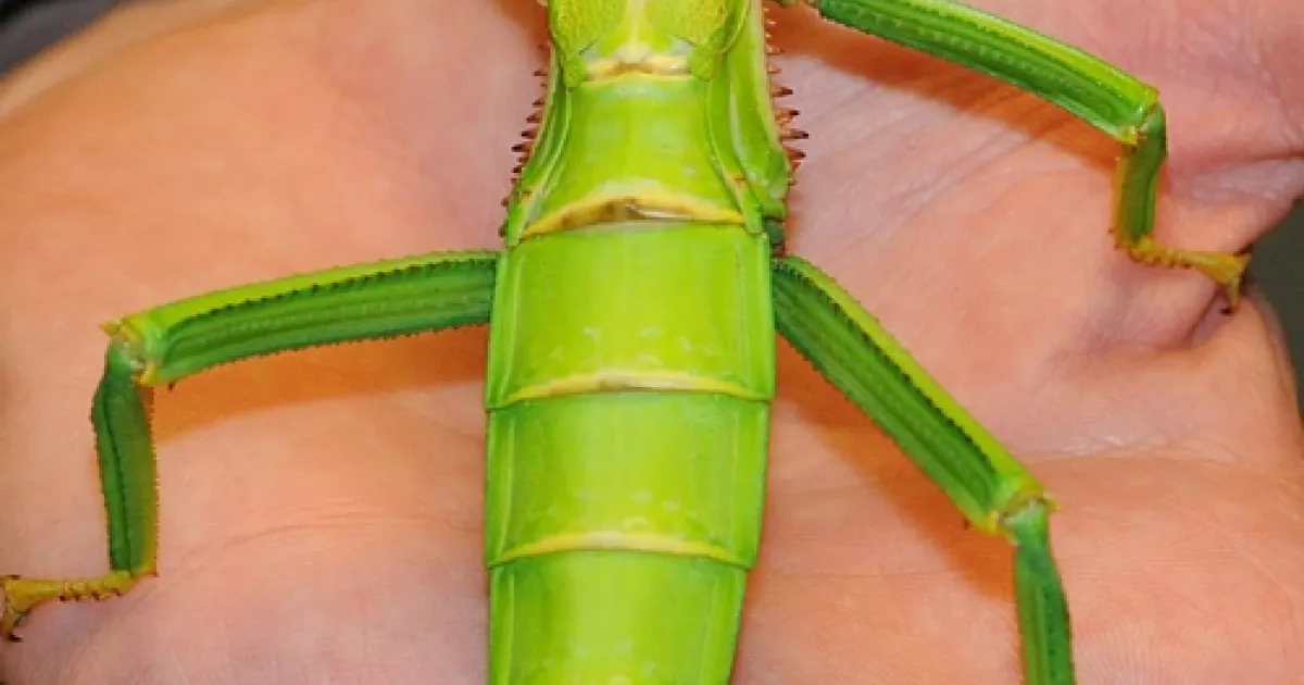 THIS KELLY GREEN walking stick is the impetus behind the Bohart Museum's special theme, "What Has Six Legs and Is Green All Over?" The Bohart will focus on what's green from 1 to 5 p.m., Sunday, March 21 in a special St. Paddy's Day theme. (Photo by Kathy Keatley Garvey)