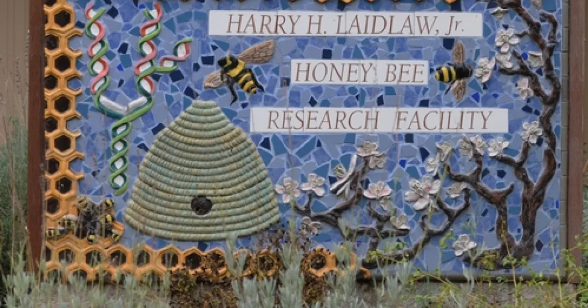 If you look closely at the colorful ceramic sign at the Harry H.Laidlaw Jr. Honey Bee Research Facility on Bee Biology Road, University of California, Davis, you'll see an entrance to a bee hive.
