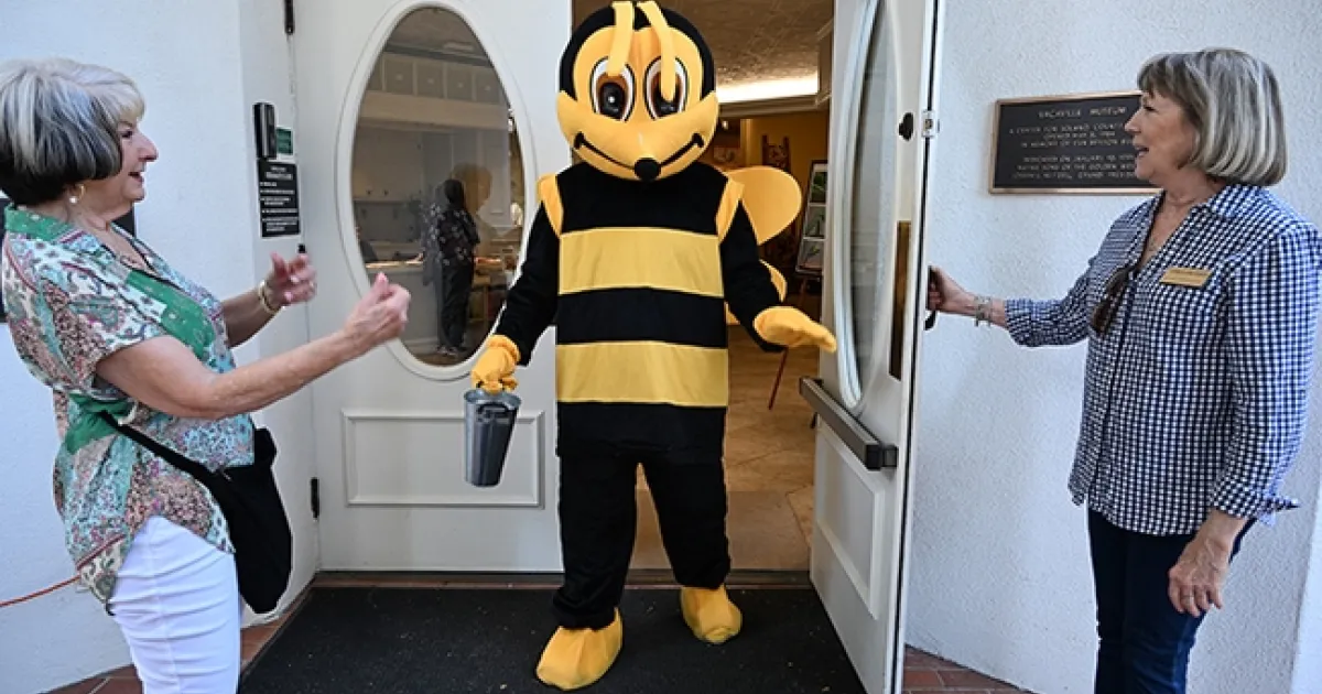 The California Master Beekeeper Program, directed by associate professor of Cooperative Extension Elina Niño, based in the UC Davis Department of Entomology and Nematology, loaned the costume to the Vacaville Museum Guild for the day. The Bee has appeared at special events, including the annual California Honey Festival in Woodland.