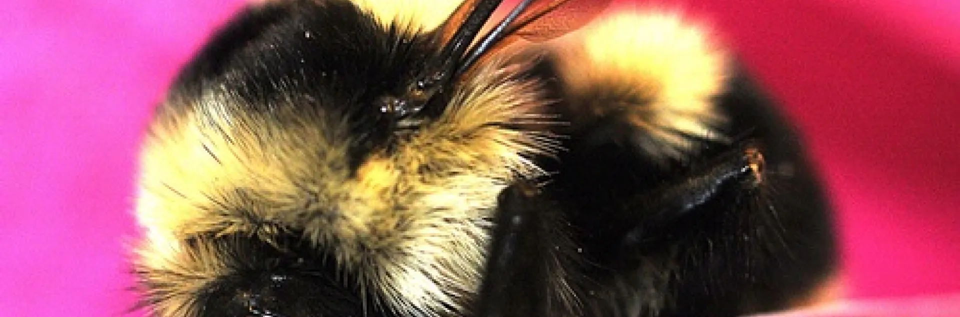 These particular bees, native to North America, are nicknamed "the orange-rumped bumble bees." They're basically your fuzzy-wuzzy, yellow-banded black bumble bees.