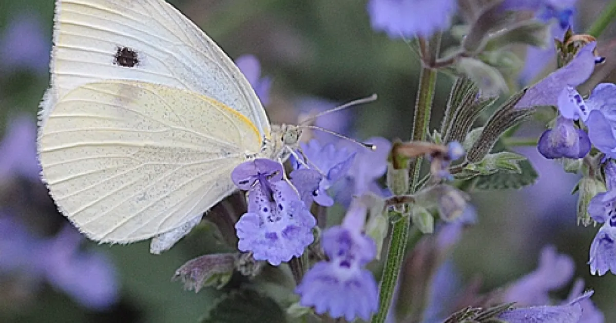 The cabbage white butterfly (Pieris rapae) looks like a Lady in White when she perches on catmint.