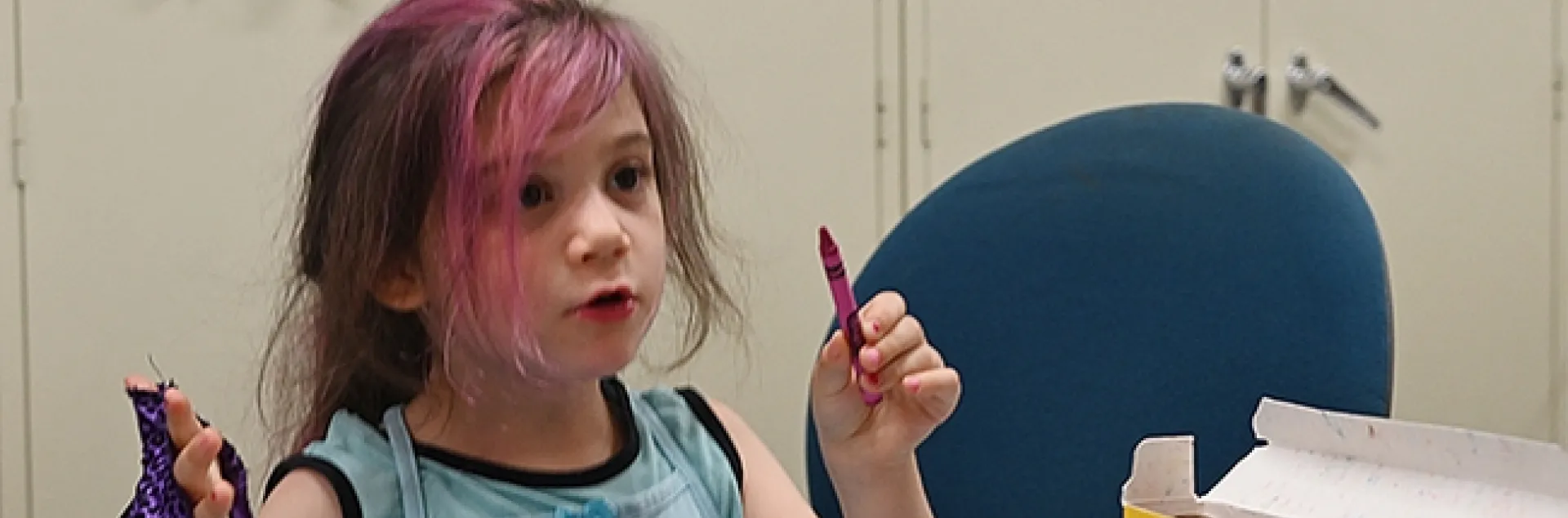 Soraya Qaqunah, 4, of Davis, looked at the box of crayons, selected her choices, and began to color the eyes. Her brother Elias Qaqunah and his friend each chose to turn a mantis head into a tarantula head after admiring the nearby Mr. Curly, the Tarantula. Elias decided his tarantula should be yawning. "How to you draw a yawn?" he asked.