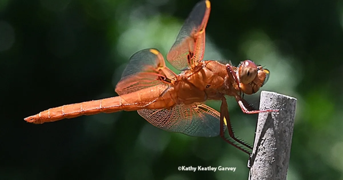 Still, what a beauty of a dragonfly--a red flameskimmer or firecracker skimmer (Libellula saturata), native to Western North America.