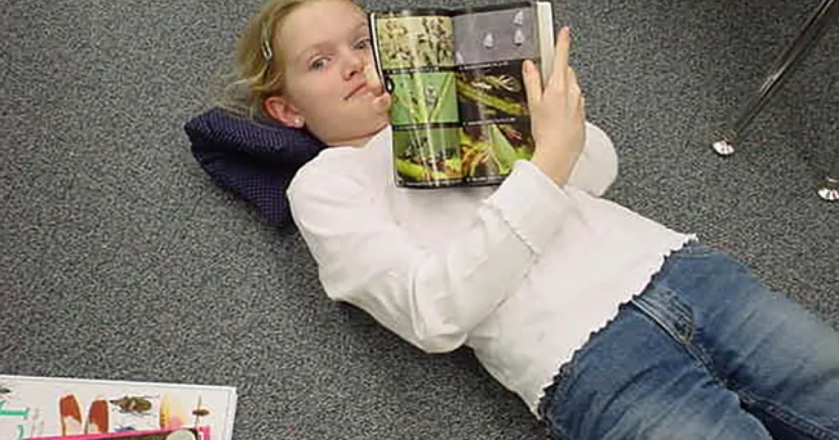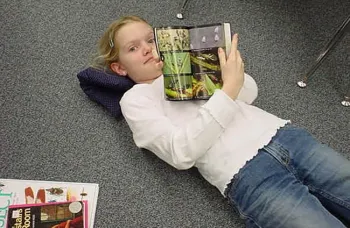 Jill Oberski is in the third grade, stretched out on the classroom floor reading her "Audubon Field Guide to Insects and Spiders of North America." Another insect publication is within reach.