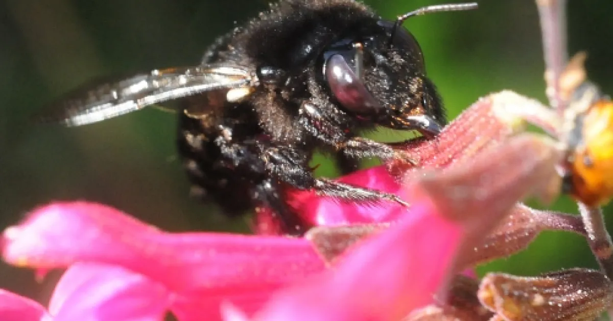 The carpenter bee, a black bee larger than a bumble bee, burrows into dead trees, logs and your unpainted or unvarnished fence posts or deck.