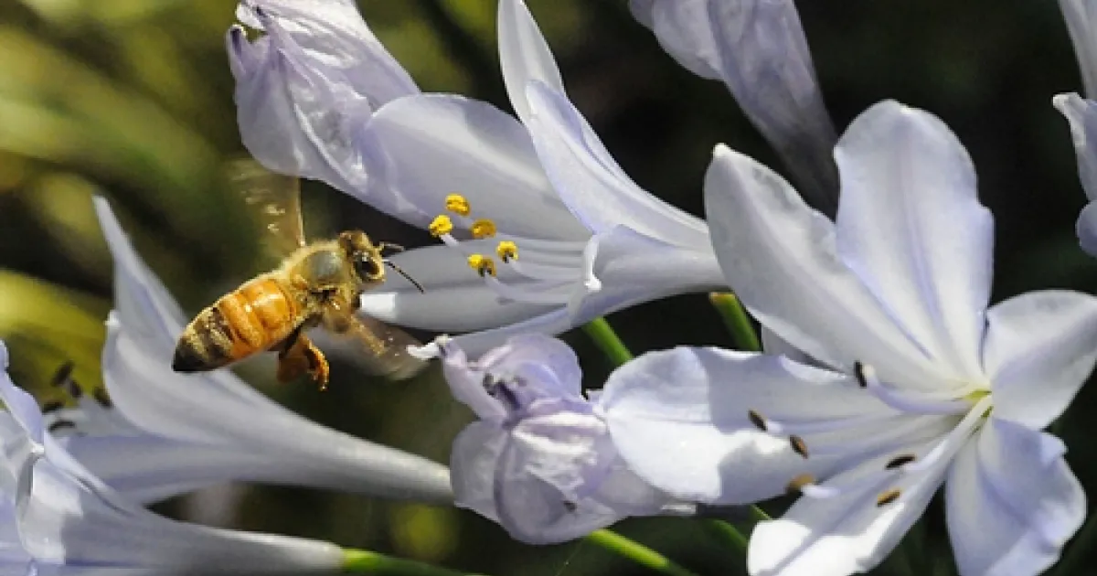 Sometimes good things come in small blue packages. Honey bees go absolutely berserk over this little African lily.