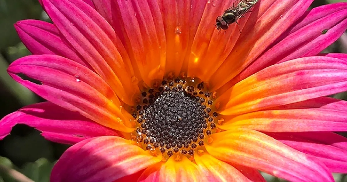 Syprhid flies, also known as "hover flies" or "flower flies" are good pollinators and predators: many of them prey on aphids and mealybugs. Scientists estimate that there are more than 6200 species of syrphid flies in the world, and more than 3000 in California alone.