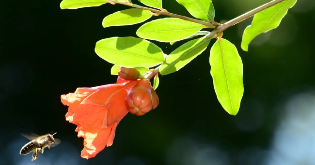Spanish settlers introduced the pomegranate tree to California in 1769. The honey bees came later: 1853.