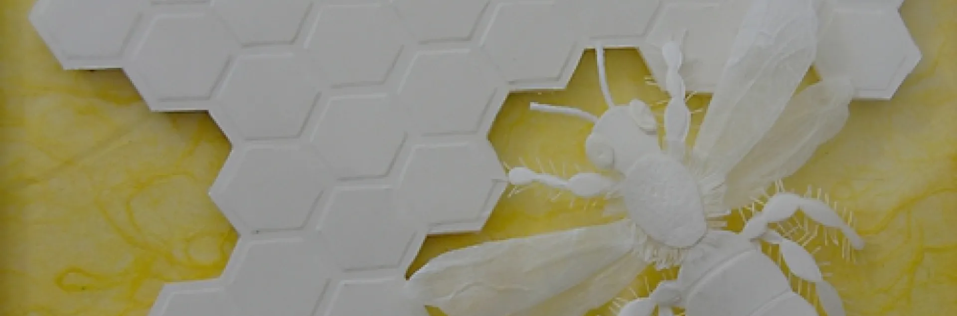 Noted artist Marilyn Judson (right) of Davis created the paper sculpture (below) now on display in the "Sticky Business: Art of the Honey Bee" show that runs through Dec. 23 at the Pence Gallery, 212 D St., Davis. Gallery hours are Tuesdays through Sunday from 11:30 a.m. to 5 p.m.