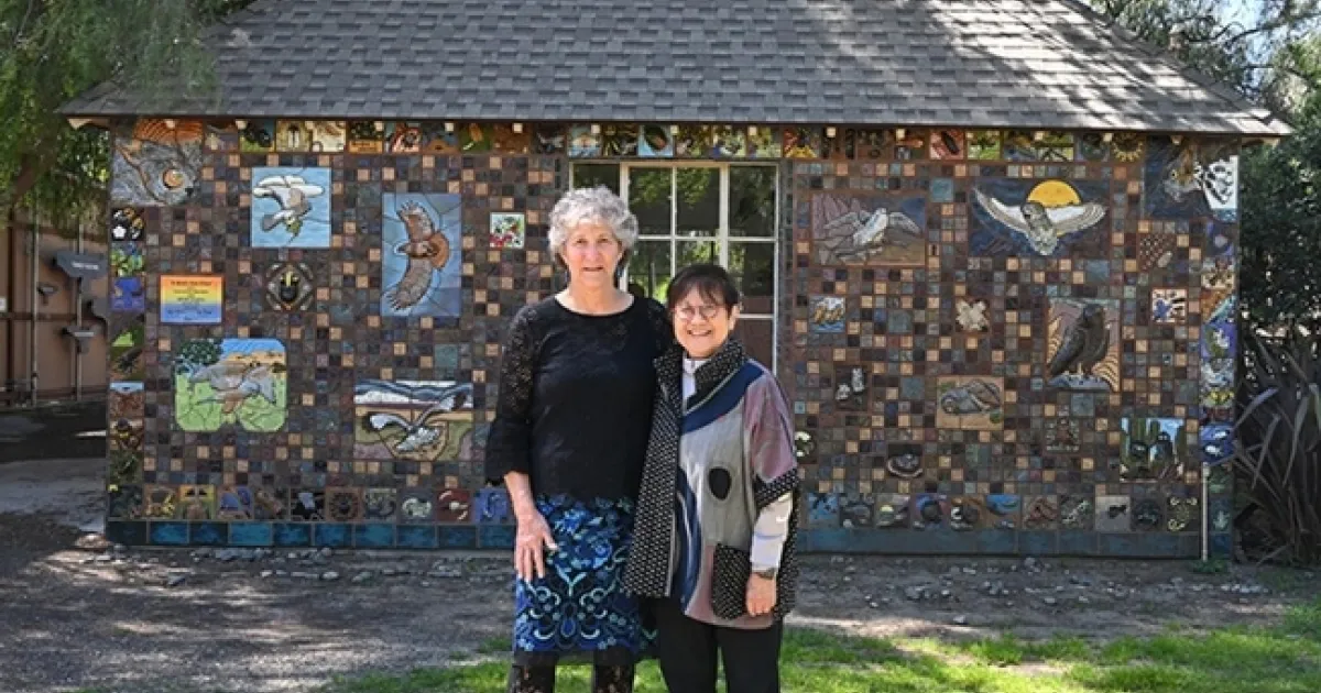 The mural, measuring 22-feet wide and 8-feet in height, is comprised of more than 1300 handmade ceramic relief artworks, tiles and trim pieces. “The mural celebrates 11 key raptor species found in California and 84 insect species that are either parasites of these raptors or eaten by them,” said Ullman, an entomologist-artist who co-founded the UC Davis Art-Science Fusion Program with artist Donna Billick of Davis.