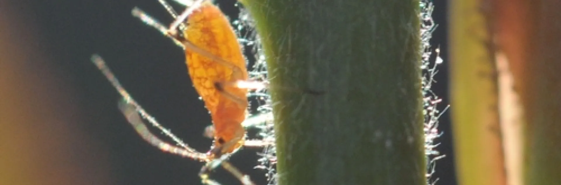A soldier beetle crawled to the edge of a leaf. A ladybug cartwheeled over a leaf and then clung to the tip.