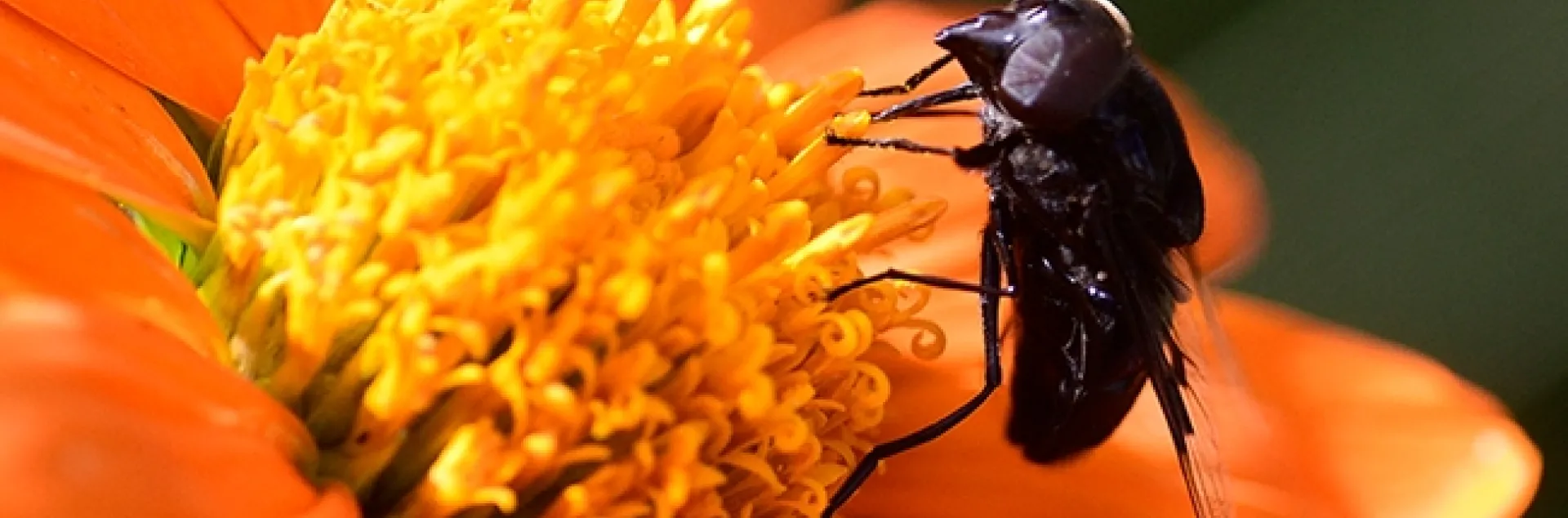 It's Friday Fly Day and this one was nectaring on a Mexican sunflower, Tithonia rotundifolia.