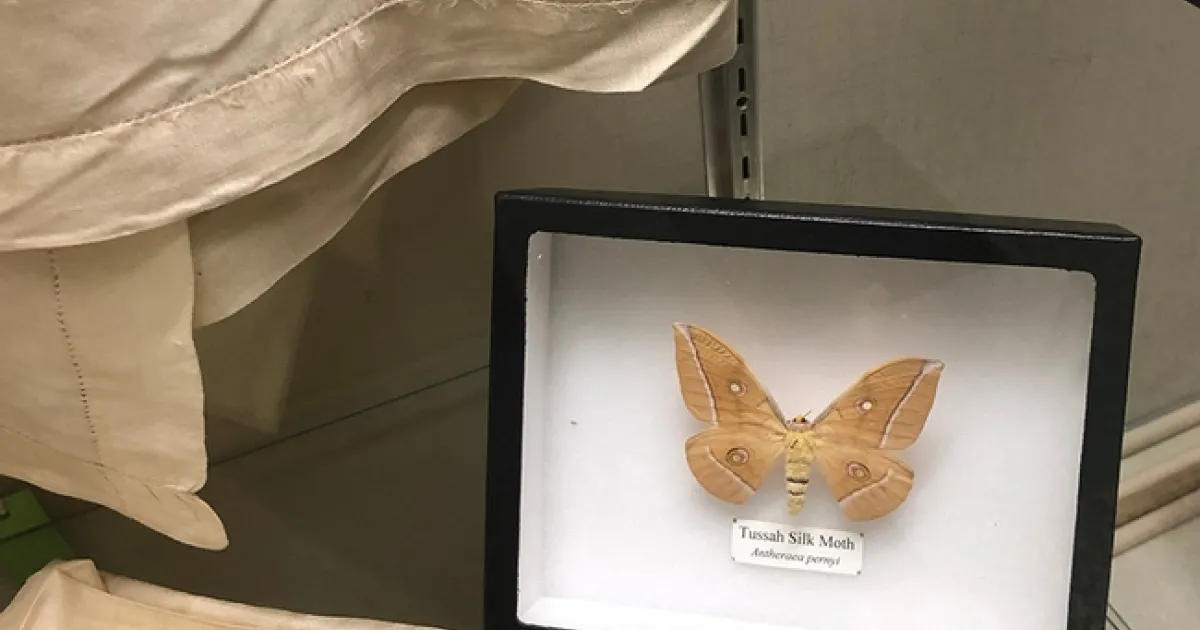 "These textiles represent work that has been done for centuries, and in some cases millennia, throughout Asia," Cluff said. "The relationship between these artists and the insects that provide their materials is beautiful and elaborate and we wanted to bring it to light." The hallway display of silkworm moths showcases tasar, tussah, eri and mulberry silk.
