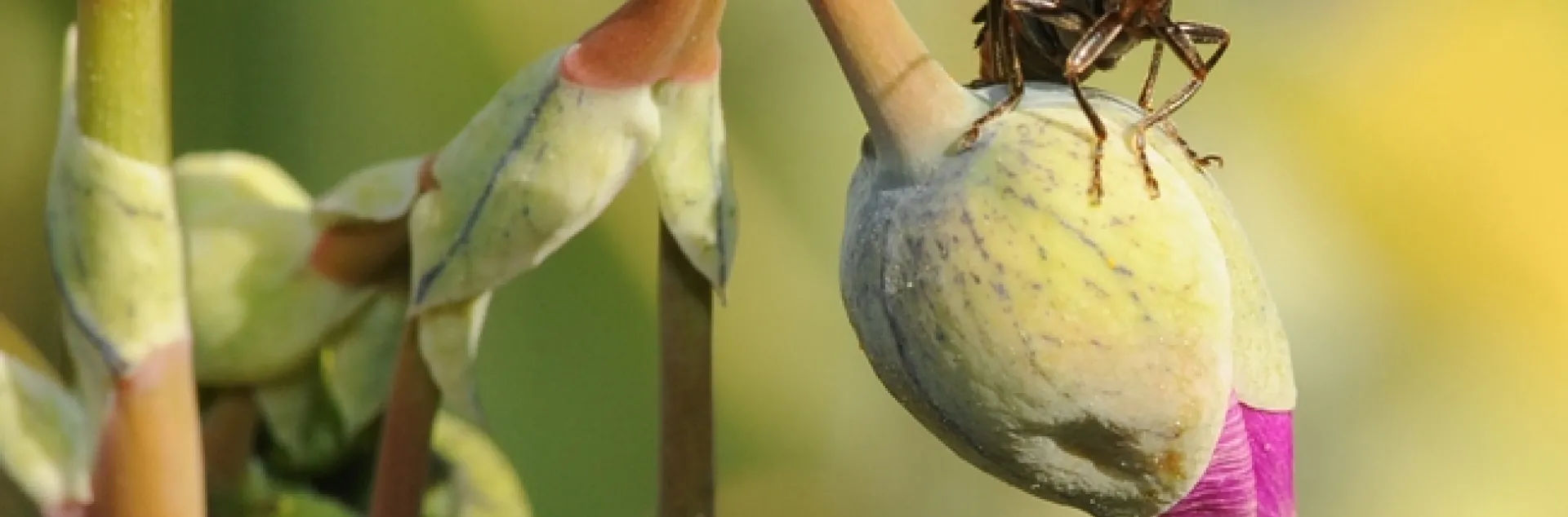 Soldier beetle (famiy Cantharidae) perched on rock purslane bud. (Photo by Kathy Keatley Garvey)