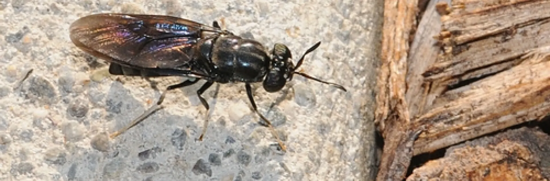 Common name: black soldier fly (BSF). Scientific name: Hermetia illucens.
