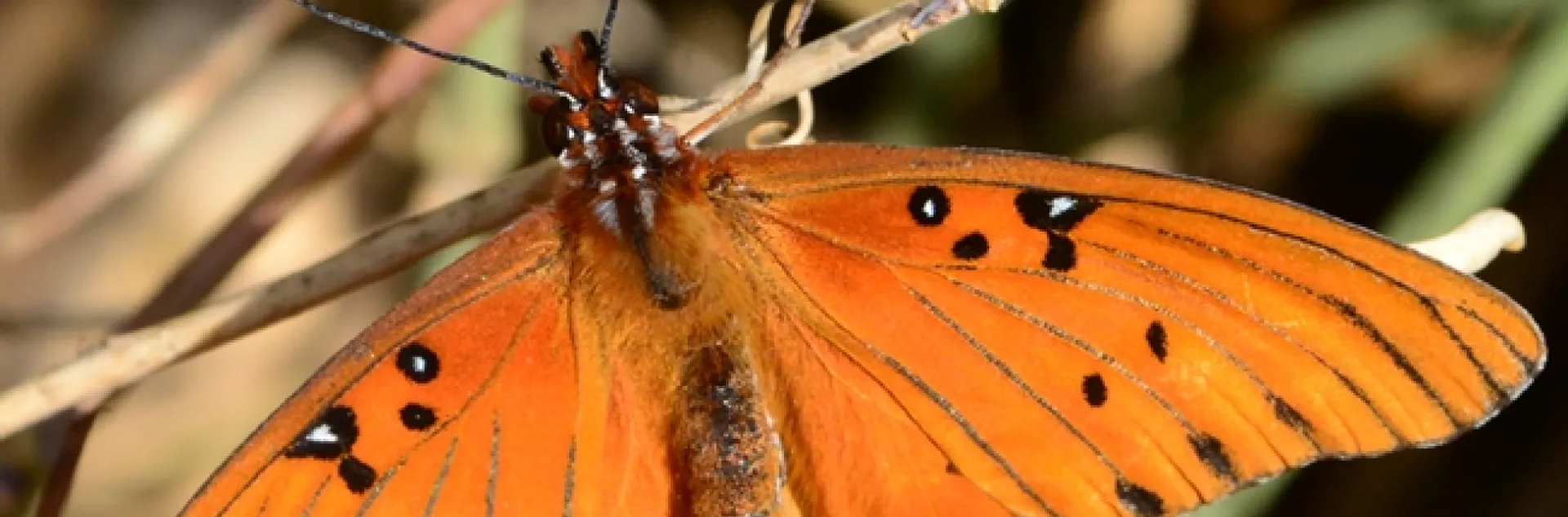 Those who want to attract the Gulf Frit can do so by planting its host plant, passionflower vine (tropical genus Passiflora).