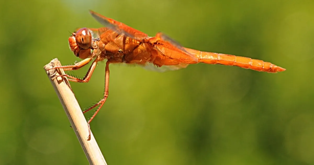 The flame skimmers belong to the family Libellulidae and are native to western North America. The red flame skimmer (Libellula saturata) is common in California. The immature flame skimmers or nymphs inhabit warm ponds and streams and feed on the larvae of mosquitoes, aquatic flies and mayflies, as well as on freshwater shrimp, small fish, and tadpoles. You'll often see the adults gliding through the air, catching moths, syrphid flies and bees.