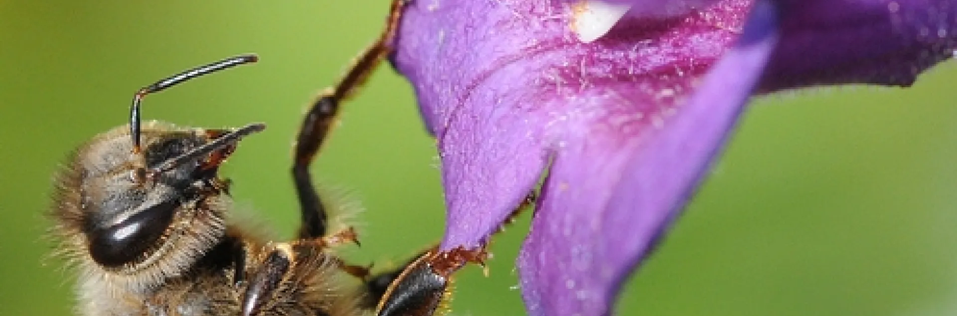 The amber-colored bee was foraging among the purple two-lipped flowers. The plant derives its name from what appears to be a "tongue" (staminode) poking from the "mouth" of the blossom.