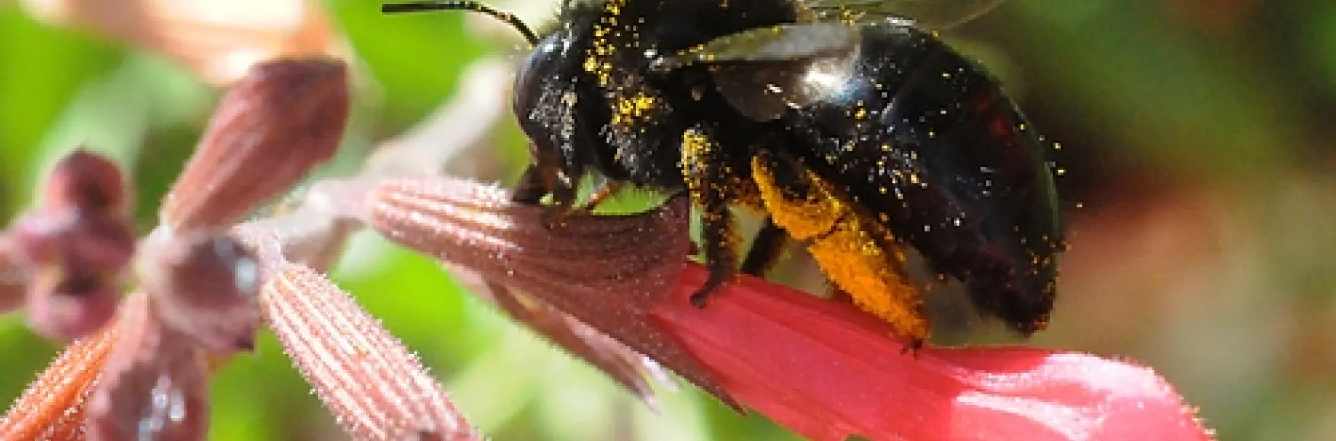 Due to their large size, they cannot enter tubelike blossoms such as salvia (sage), so they slit the base of the corolla. They rob the nectar without pollinating the flower.