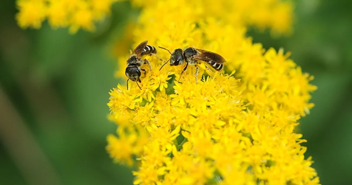 Female sweat bees, Halictus ligatus, on goldenrod at the UC Davis Arboretum and Public Garden. (Photo by Kathy Keatley Garvey)