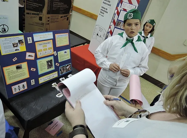Evaluators Myah Waldvogel of the Pleasants Valley 4-H Club, Vacaville and Linda Layton of the Sherwood Forest 4-H Club, Vallejo, listened closely and asked questions.