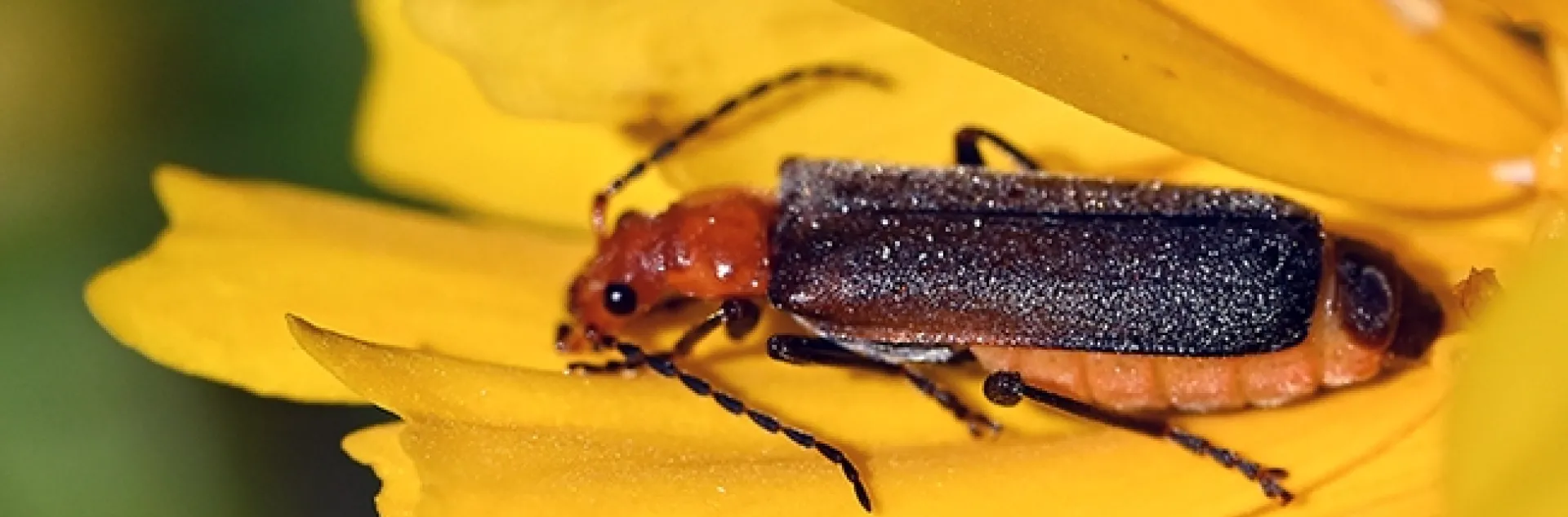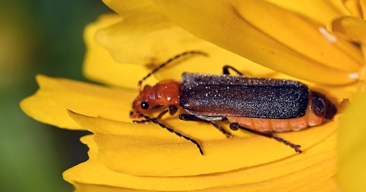 These insects (family Cantharidae) resemble the uniforms of the British soldiers of the American Revolution, which is apparently how their name originated. They're also called "leatherwings" in reference to their soft, leatherylike wing covers.