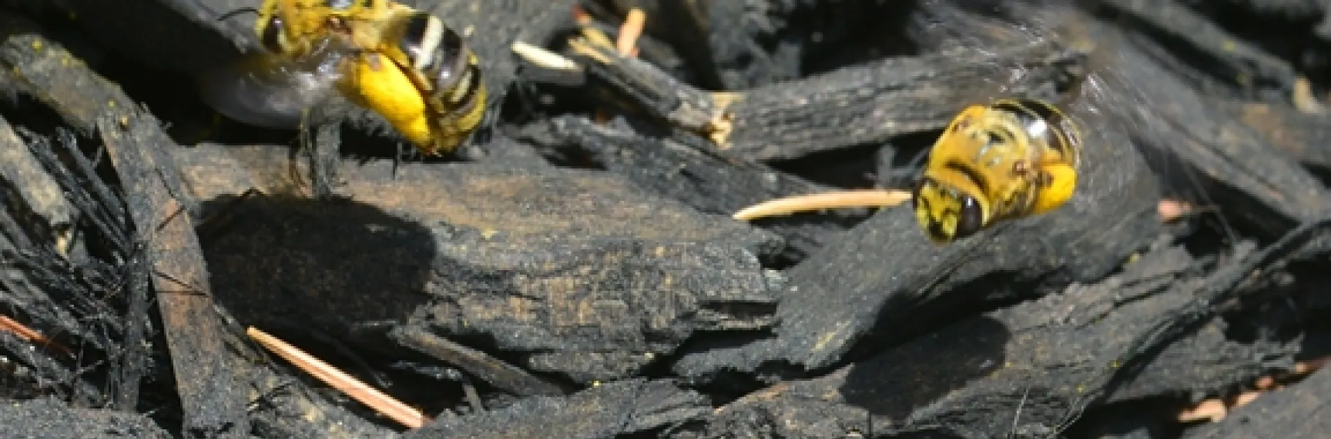 Guerena contacted UC Davis officials and learned that these particular bees were sunflower bees, Svastra obliqua expurgata, nesting underground. Native pollinator specialist Robbin Thorp, distinguished emeritus professor of entomology at UC Davis, identified them, and Katharina Ullmann, who last year received her doctorate in entomology from UC Davis and is now a crop pollination specialist with the Xerces Society for Invertebrate Conservation, circled the site with yellow caution tape today and posted an educational sign.