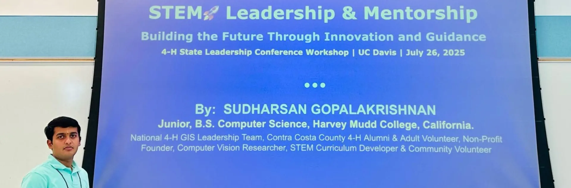 In 2023, I was accepted into top public and private universities across the nation through a deeply mission-driven college application process, ultimately choosing Harvey Mudd College to pursue a B.S. in Computer Science, one of the most prestigious STEM institutions in the country. During my freshman year, I had the opportunity to present my research internationally in Germany, engaging with global scholars and educators. I discovered a deep passion for Computer Vision and, since January 2025, have been conducting research under the mentorship of a faculty member in the Department of Engineering. In parallel, I continue to serve as an Adult Volunteer for the National 4-H GIS/GPS Leadership Team, leading national recruitment efforts and mentoring youth in STEM. I also reviewed and provided expert feedback on a 4-H Drone Curriculum developed by Dr. Steven Worker, a longtime mentor and leader in 4-H STEM education. My commitment to mentoring California 4-H youth remains strong, as I support local clubs through curriculum design, coaching, and hands-on STEM learning opportunities in areas such as GIS, Python, and Artificial Intelligence. I am proud to be living proof that 4-H leadership does not end after high school it evolves and deepens with purpose.