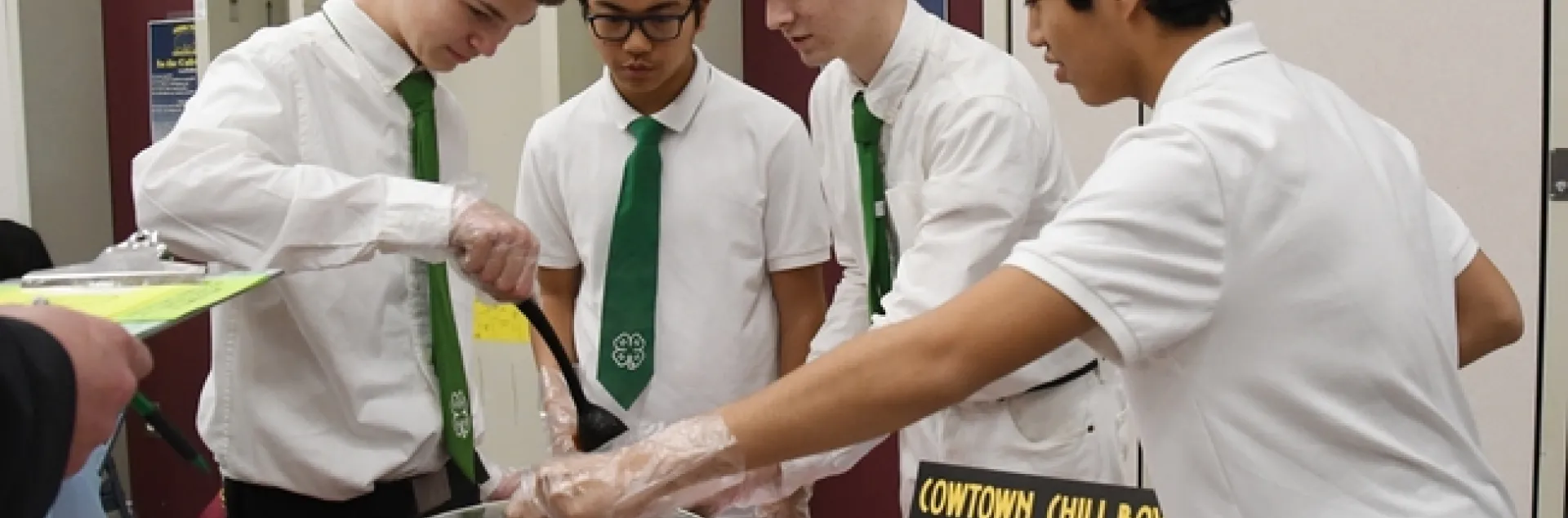 The Cowtown Chili Boys from the Vaca Valley 4-H Club, Vacaville--Xander Lovell, Ian Weber and brothers Francis and Matthew Agbayani-- served "Chili Con Carne," a generational family recipe from Xander's grandmother, Peggy Elgin of Maryland.