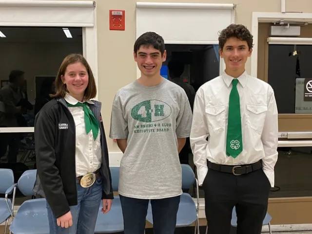 San Bruno/South San Francisco 4-H Club officers: Vice President Alex, Treasurer Adam, and President Tristan