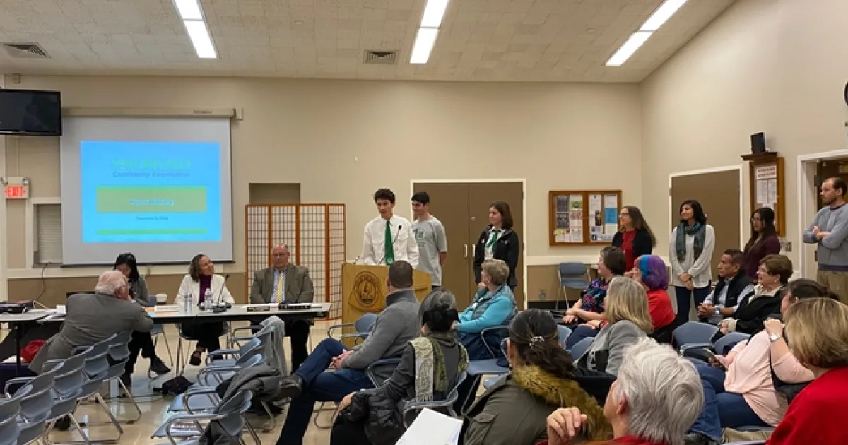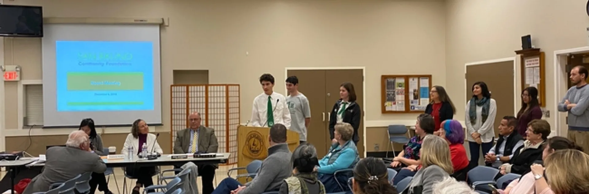 Club President Tristan speaking at the San Bruno Community Foundation meeting