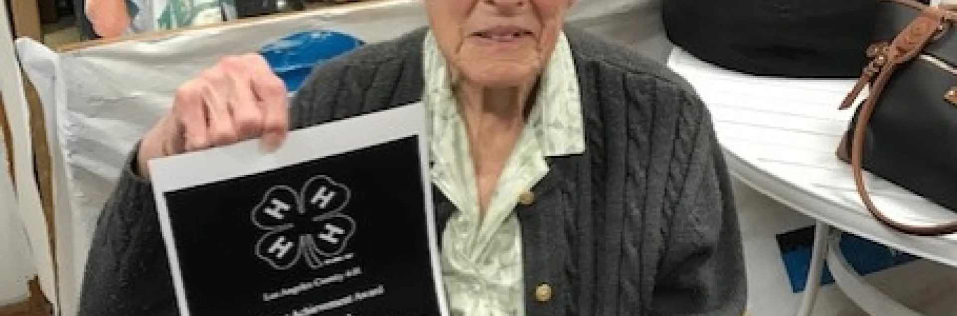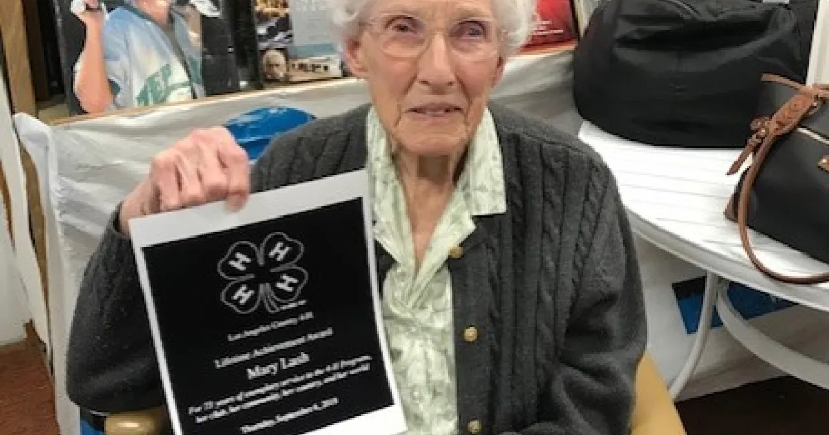 Mary Lash pictured with her Lifetime Achievement award from Los Angeles County 4-H