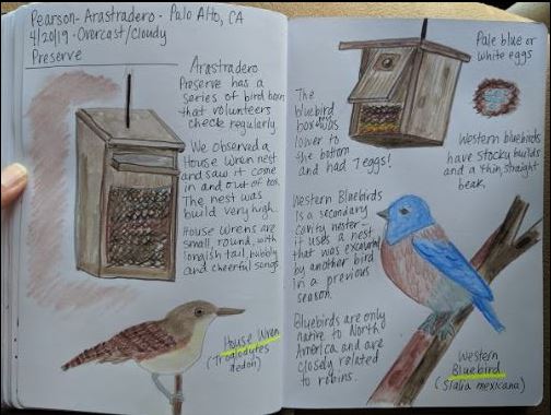 The course provides opportunities to visit outdoor spaces and meet experts that you would normally not be able to. Our docent-led field trip to Jasper Ridge, a biological preserve owned by Stanford University, was an opportunity only accessible to the public by special request. Jasper Ridge is a outdoor classroom that hosts workshops and ongoing research projects that bring scientists and students to visit. We saw amazing stretches of native wildflowers and that inspired nature journaling during our visit in March.