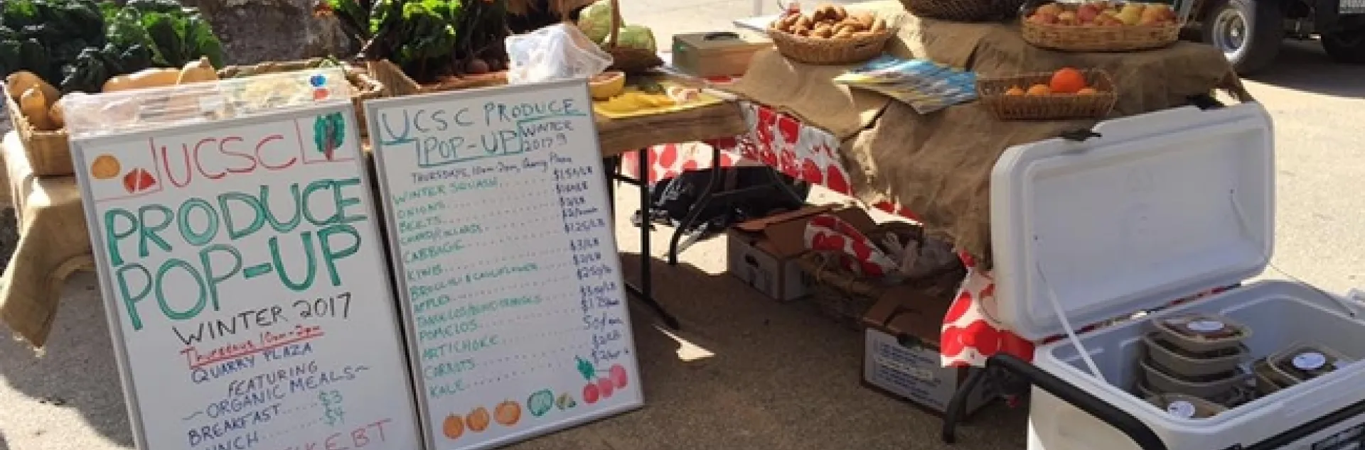 The Food Systems Working Group (FSWG), anchored within the Center for Agroecology and Sustainable Food Systems (CASFS) provides a space for the student run Produce Pop-Up project at UCSC. The Produce Pop-Up began as a senior project in the Fall of 2015 and has been sustained through FSWG members ever since. In efforts to improve issues of food access and healthy food purchasing on campus, the Produce Pop-Up provides a space for students to purchase affordable produce sourced from the CASFS Farm and local Santa Cruz farmers' markets. By partnering with the CASFS farm and farmers' markets the Pop-Up is establishing a connection with local farmers and UCSC student organizations.