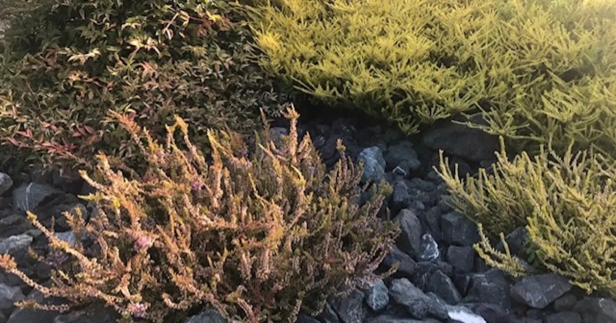 Stone mulches – rocks, gravels, pebbles, and decomposed granite (DG), are good for fire-scaping and so are useful near buildings and to break up planting beds into islands that discourage fire spread. They protect the soil from adverse weather but do not feed it. Most people line stone material with landscape cloth to facilitate its removal when desired and to keep the stone on the surface rather than sinking into the root area. Unfortunately, the landscape cloth will at some point need to be hauled to landfill.