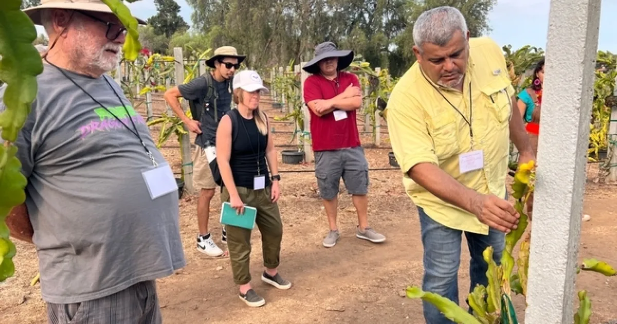 Un grupo de 60 agricultores se reunió, en la granja de fruta del dragón Wallace Ranch en Bonsall para conocer las últimas investigaciones sobre la producción de este cultivo que es especialmente tolerante a las sequías. Los participantes no solo tuvieron la oportunidad de presenciar una demostración sobre cómo cultivar la fruta, además aprendieron sobre las plagas que atacan este tipo de cultivo y cómo combatirlas y escucharon los testimonios de granjeros de pitahaya exitosos.