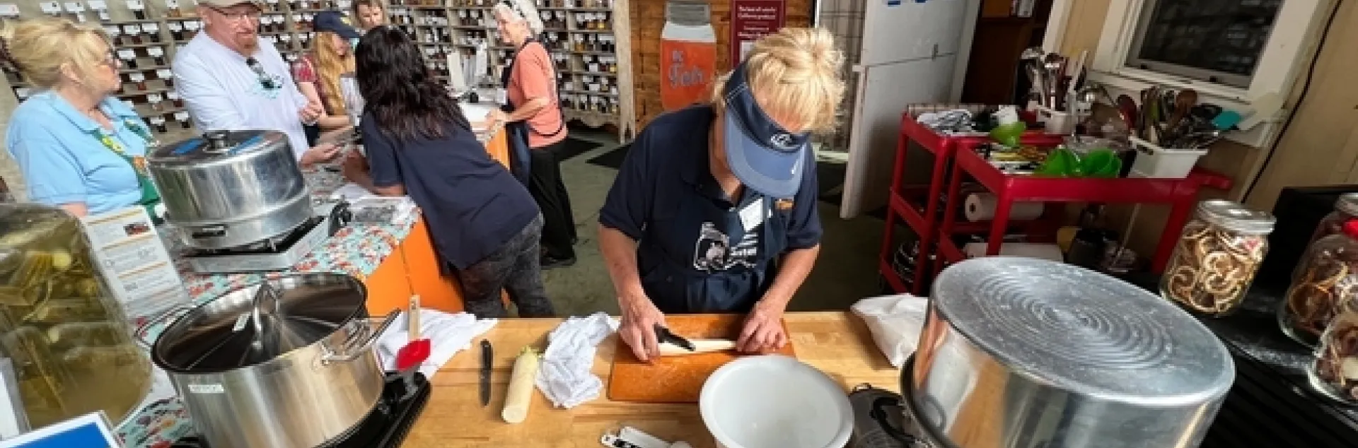 Si usted visitó la feria este verano, del 15 de julio al l4 de agosto, puede ser que haya visto en plena acción a los Conservadores de Alimentos del Condado de Orange en su cocina decorada al estilo granjero rústico, ubicada en la sala de exhibición OC Promenade. Y si la decoración no le llamó la atención, seguro que la fila de los coloridos frascos agrupados junto a la pared, sí. Durante todo ese mes, tres voluntarias del programa llevaron a cabo demostraciones en vivo sobre cómo envasar alimentos.