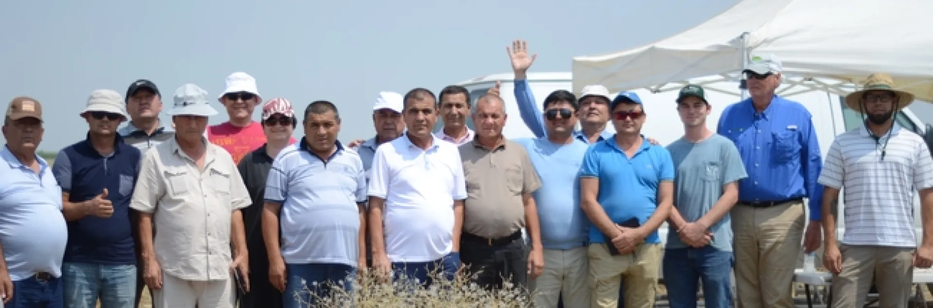 Sixteen farmers from the Fergana and Jizzakh regions of Uzbekistan visited five farms and toured the NRI Project in Five Points, CA July 30th and 31st as part of a project sponsored by the World Bank to improve wheat and cotton production in their country through the use of no-till and conservation agriculture approaches.  The tour group was hosted by CASI's Jeff Mitchell who was asked by John Bradley, formerly of the University of Tennessee's legendary Milan Research Center and Monsanto, to coordinate the tour.  Bradley had visited CASI back in the early 2000's when he spoke to us regarding the advances that farmers in Tennessee had made with no-till systems.