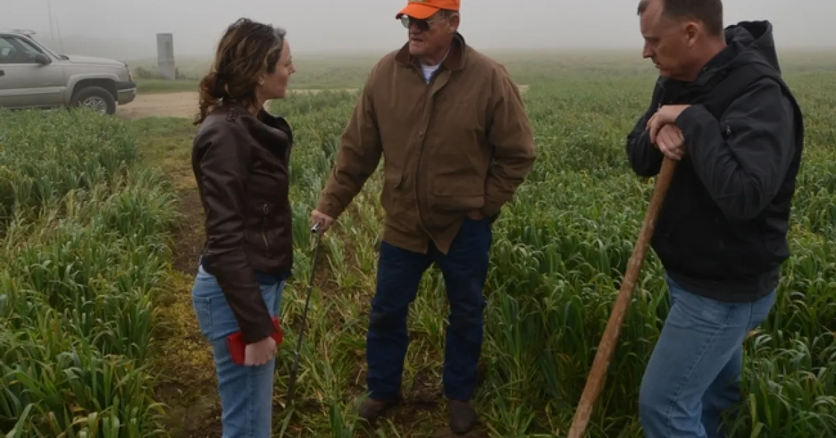 CASI farmer members, Michael and Adam Crowell of Turlock, Darrell Cordova of Denair, and Scott Schmidt of Five Points, along with Jeff Mitchell, hosted Amelie Gaudin, the new professor of Agroecology in the Department of Plant Sciences at UC Davis at their farms on January 23, 2015 to share with her information about their farms and the efforts they have made to improve their crop production systems. Each of these farmers very graciously welcomed Dr. Gaudin who has been on the job in Davis for only three weeks.