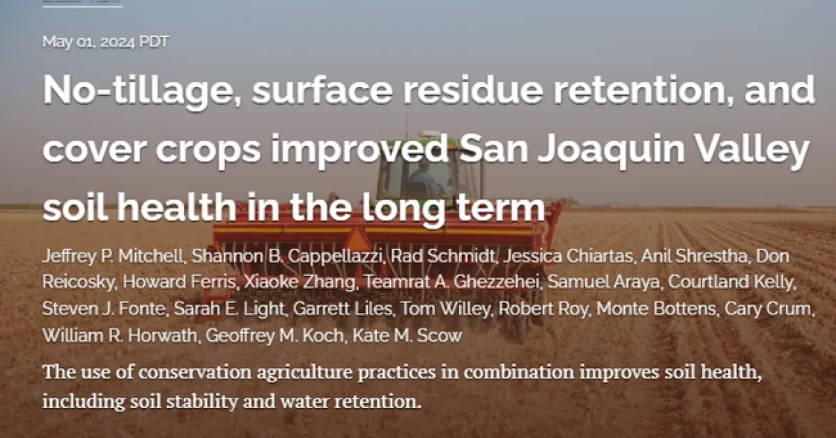 In an effort to extend information on CASI's twenty-year conservation agriculture study that has been conducted at the University field station in Five Points, CA and that has been recently published in the journal, California Agriculture, Jeff Mitchell provided three radio interviews on the morning Ag Report that Don York produces for KMJ580 AM each morning out of Fresno. The segments aired on May 23rd and on June 4th and 6th, 2024 and are available below. Mitchell shared findings of the long-term “NRI Project” that since 1998 has examined four production systems – standard tillage without cover crop, standard tillage with cover crop, no-till without cover crop, and no-till with cover crop.