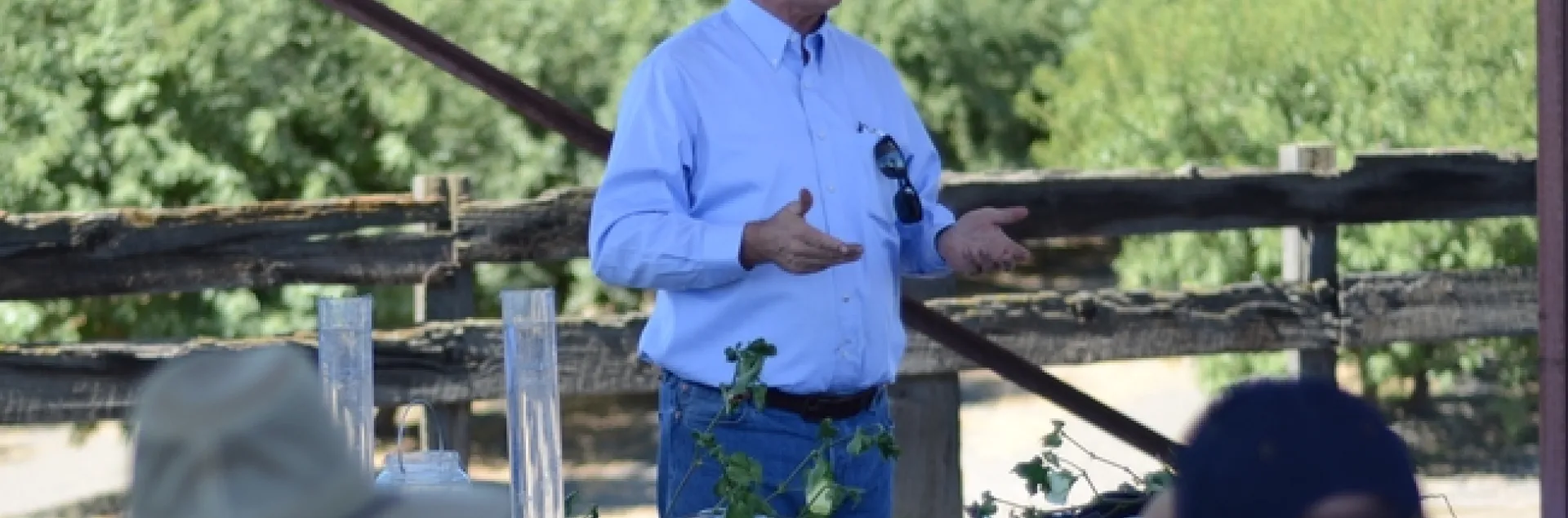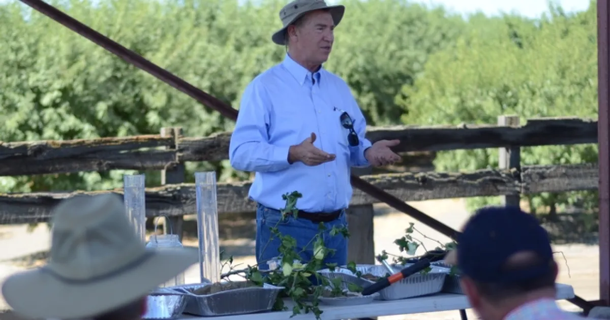 Veteran UC Cooperative Extension Advisor, Dan Munk, of Fresno County, leading discussion of mid-season cotton crop and water management, at the July 24th public field day at Pikalok Farms in Mendota, CA.CASI's Dan Munk, UC Advisor in Fresno County, and Jeff Mitchell, Cropping Systems Specialist out of the Department of Plant Sciences, UC Davis, shared knowledge and experience that they've developed over the years with a highly engaged and interactive group of cotton farmers on July 24th at a public field day hosted by Sustainable Cotton at Pikalok Farms in Mendota, CA. Gary and Mari Martin of Pikalok graciously hosted the educational event that turned out to be a quite-animated and instructive, frank exchange among all participants. Sustainable Cotton has been active in the San Joaquin Valley as a convener of information on alternative practices and approaches to cotton farming that use less chemical inputs. Munk provided a thorough discussion of important mid-season crop and water management topics and Mitchell challenged the group with respect to opportunities for using reduced disturbance and soil health techniques. The session was also part of the outreach and educational program of a California Department of Food and Agriculture Healthy Soils Program project, Securing the future of highly productive annual cropping systems in California, that involves monitoring sites at Pikalok Farms in Mendota and the longstanding NRI Project in Five Points. A follow-up summary of Mitchell's presentation and discussion on the under-valued importance of soil care in most annual cropping systems in California today will be posted at the CASI blog site during the coming days.