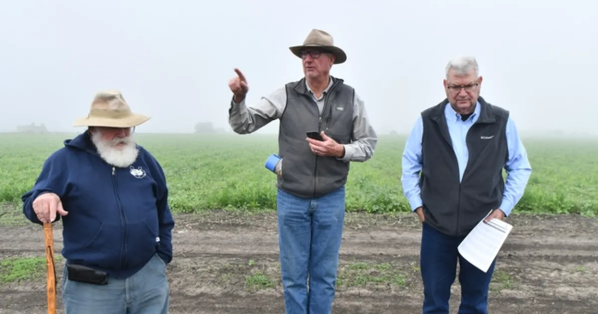 On a foggy morning at the Santa Ana Ranch of Phil Foster's Pinnacle Organically Grown Produce farm nearHollister, CA, he along with fellowCIG Project farmer, Tom Willey, met with JohnPetrosso, the Sales Engineer forMazzei Injector Company to plan a study aimed at evaluating the effectiveness ofMazzei's air injection equipment as a possible means for increasing oxygen availability for soilmicrorganisms and thereby get higher vegetable crop yields. The air injection technique has had positive results in a variety of earlier studies with vegetables, but has not taken off as a mainstream practice of vegetable farmers to date. Foster and Willey are particularly keen to see if air injection might overcome some of the yield declines that they've been seeing in recent years as Phil's farm has tried to rely on less and less soil disturbance with tillage implements. The project has been in the planning stages for several months and is now shaping up in terms of more detailed field implementation. The study crop in 2022 at Foster's farm will be peppers. Three articles describing previous work on the air injection technique as well as a short video with Petrosso's predictions for what will be seen in the 2022 pepper crop are available below and at th You Tube link
