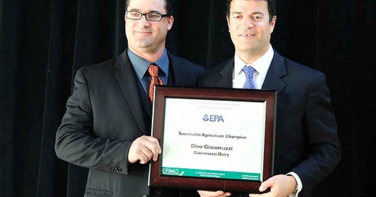 Hanford dairy farmer Dino Giacomazzi was recognized today for his innovations in conservation tillage at the U.S. Environmental Protection Agency’s 12th annual Environmental Awards Ceremony held in downtown Los Angeles, according to an EPA news release.