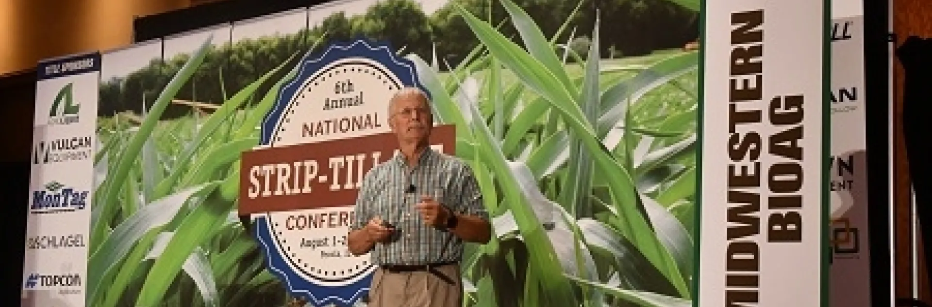 The 6th Annual National Strip-tillage Conference took place last week August 1st and 2nd in Peoria, IL and attracted a crowd of over 300 farmers who were mostly from the IL, IA, WI, MN, and OH region. However, a strong contingent of folks from CA including Cary Crum, Silas Rossow, and two colleagues from California Ag Solutions in Madera, and two Kings County dairy farmers, along with CASI's Jeff Mitchell, also took part. The way this conference series (as well as the National No-till Farmer Annual Conferences) is organized with plenary, classroom and roundtable discussion sessions tends to provide a very nuts and bolts opportunity for the overwhelmingly farmer audience to actually talk with each other about very practical and important issues that they have encountered in their quest to move to strip-tillage. This year's event had a very strong current of interest in cover crops which were quite commonly used among the farmers in attendance. Another fairly prominent theme that was addressed by several of the plenary session speakers was about the importance of speaking out and telling the story of ag to everyone and to more and more people. Other fairly ‘cutting edge' techniques that were discussed were interseeding cover crops into standing cash crops and variations on the “planting green” theme which means planting crops directly into green standing cover crops. As well, there was a relatively large interest among participants in organic strip-till systems. The importance of these sorts of events and learning activities is maybe not so much that they provide information and thinking that is directly or immediately relevant to our particular conditions or systems in CA, but rather that they offer us the chance to learn about what folks in other regions are doing and why they're doing what they're doing to grapple and achieve the improved performance systems that they're seeking to achieve. Reducing disturbance, maintaining surface residue cover, improving soil function, improving ROI, and diversifying markets were all overriding themes that were addressed by many participants, - and these are largely quite universal goals of many farmers. Additional information about the conference and the ongoing outreach efforts of the National Strip-Till Farmer Magazine is available at https://www.striptillfarmer.com/