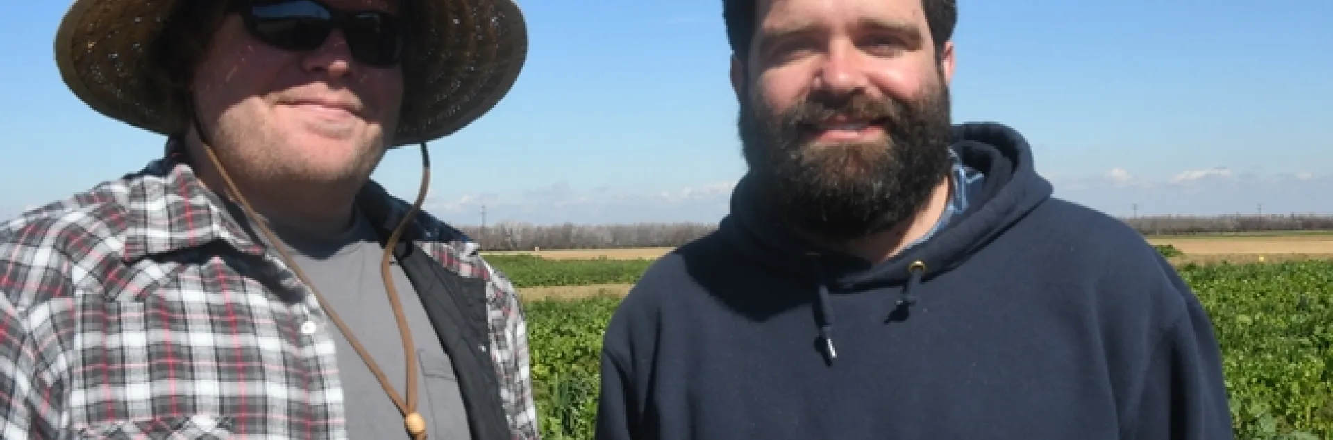 Brady and his brother, Riley Holder, farmers in Laton, CA in California's San Joaquin Valley, came out to Five Points where they visited the NRI Project fields as part of CASI's Friday soil tour program and they also sat down with CASI's Jeff Mitchell to plan their application for a project with CDFA's Healthy Soils Program (HSP). The two brothers are hoping to submit a project proposal to CDFA for the state agency's new round of Healthy Soils Program projects. In their application, they hope to receive funding from the HSP to enable them to set up a farm demonstration of cover cropping in their farm's corn and alfalfa rotation fields. They discussed details of their application with Mitchell and intend to prepare the final aspects of their proposal during the coming two weeks.
