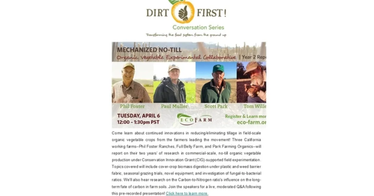 Mechanized organic no-till conversation with 4 top CA organic farmers - April 6, 2021 12:00 - 1:30 PM