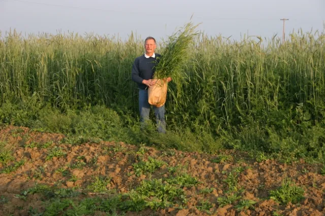 UC ANR Cropping Systems Extension Specialist, Jeff Mitchell, shown sampling winter cover crop aboveground biomass in longstanding conservation agriculture study of the impacts of reduced disturbance, cover crops, and surface residues on soil function, productivity, and ecosystem services at the Conservation Agriculture Systems study site in Five Points, CA