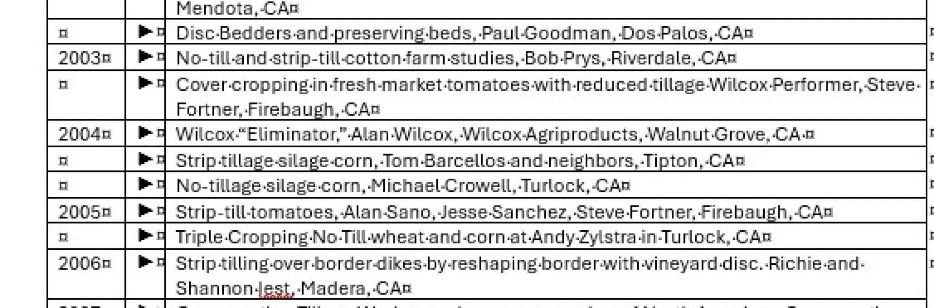 A detailed timeline of advances in tillage management in California has been prepared by a large group of CASI partners for possible publication in an upcoming article about the history of conservation agriculture in the state. This timeline includes achievements dating back to 1957 and through today. It is available here and if and when the article is published, we will post a link to the full report as soon as possible.