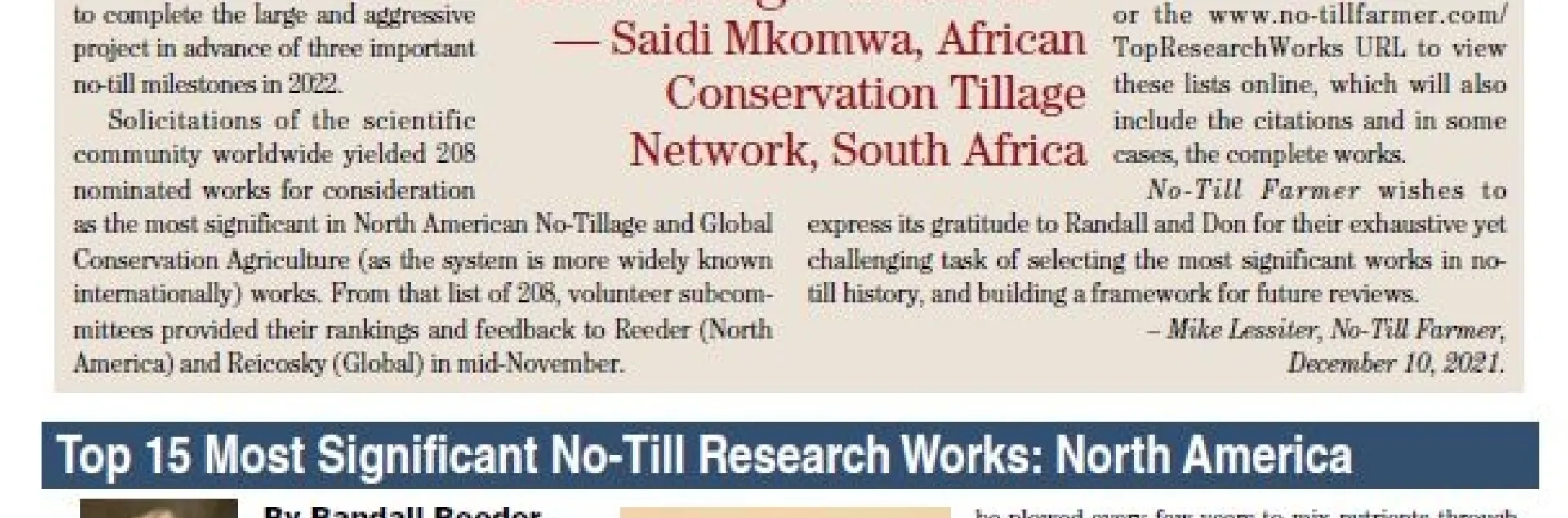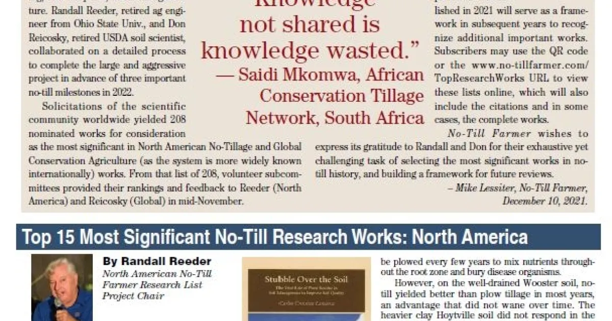 Top 15 No-till and Conservation Agriculture Research Articles Selected by Panel at National No-till Farmer Association!