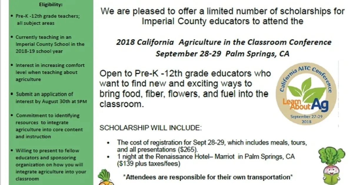 Conference scholarship is open to Pre-K -12th grade educators in Imperial County who want to find new and exciting ways to bring food, fiber, flowers, and fuel into the classroom.